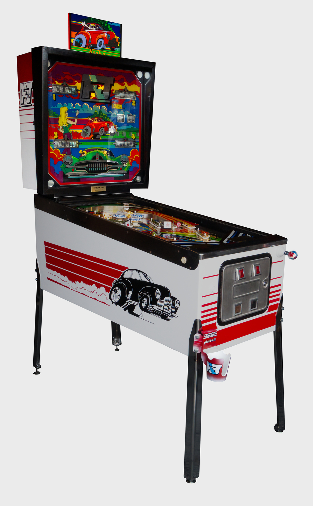 Every Hankin machine we offer has been fully restored to a very high standard. They have been professionally stencilled and fitted with new rubbers, LEDs, flicker kits, new plastics where required, along with new glass and legs. Each machine also comes with its own unique topper, pincup shooter rod, and pinmat.